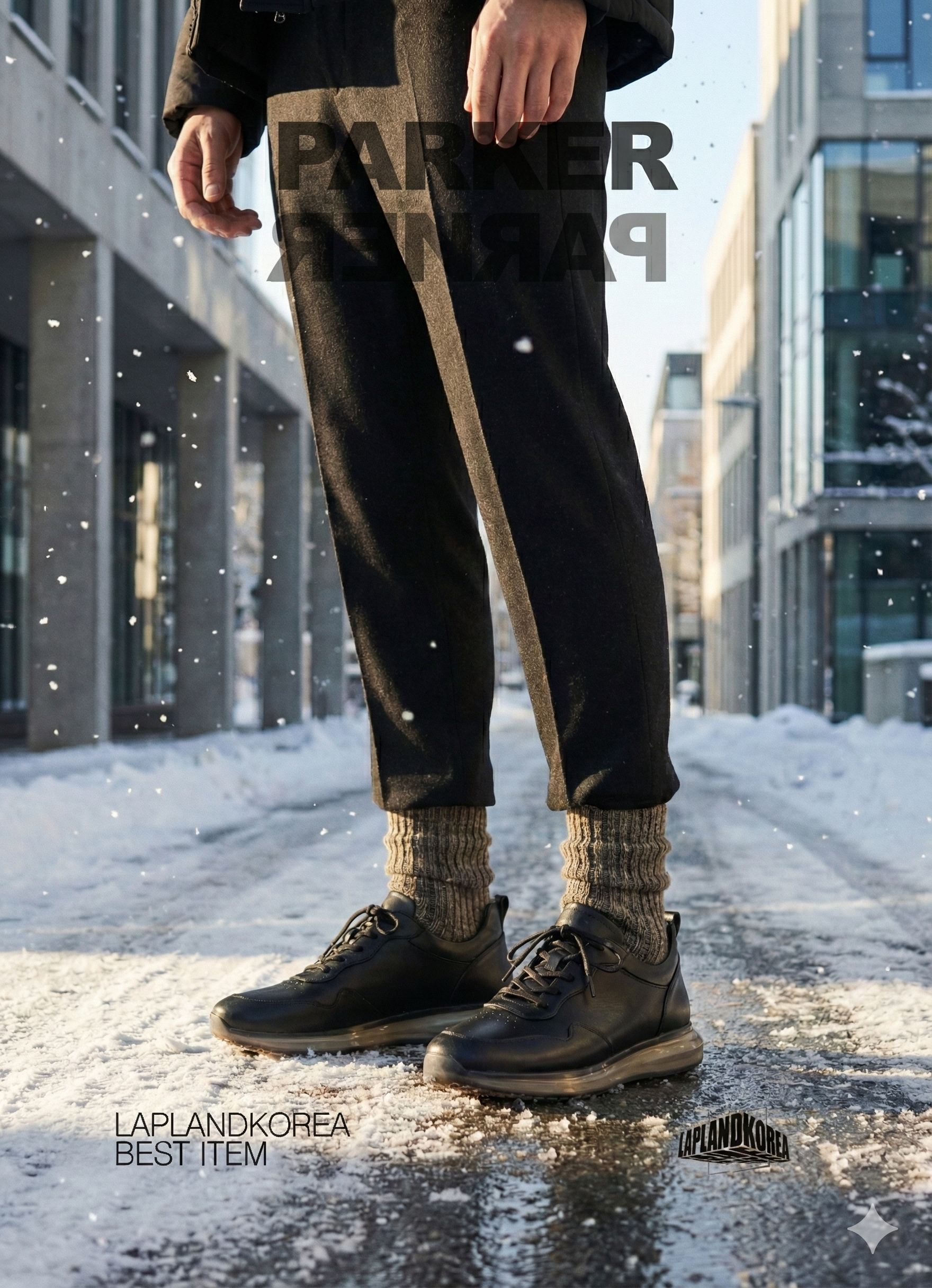 제품설명 : 반투명 에어쿠션 창으로 충격 흡수 기능과 세련된 무봉제 가죽 갑피 디자인,