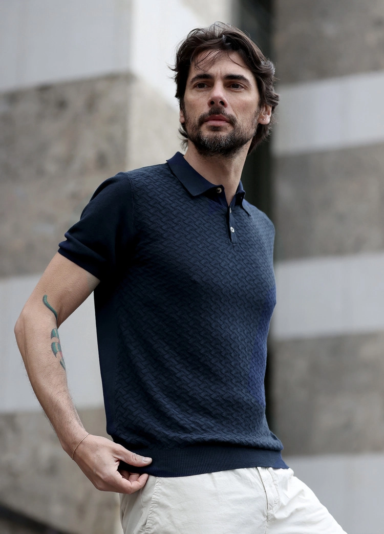 [40%][아르메오디] 레귤러핏 가먼트다잉 패턴 포인트 니트 네이비
