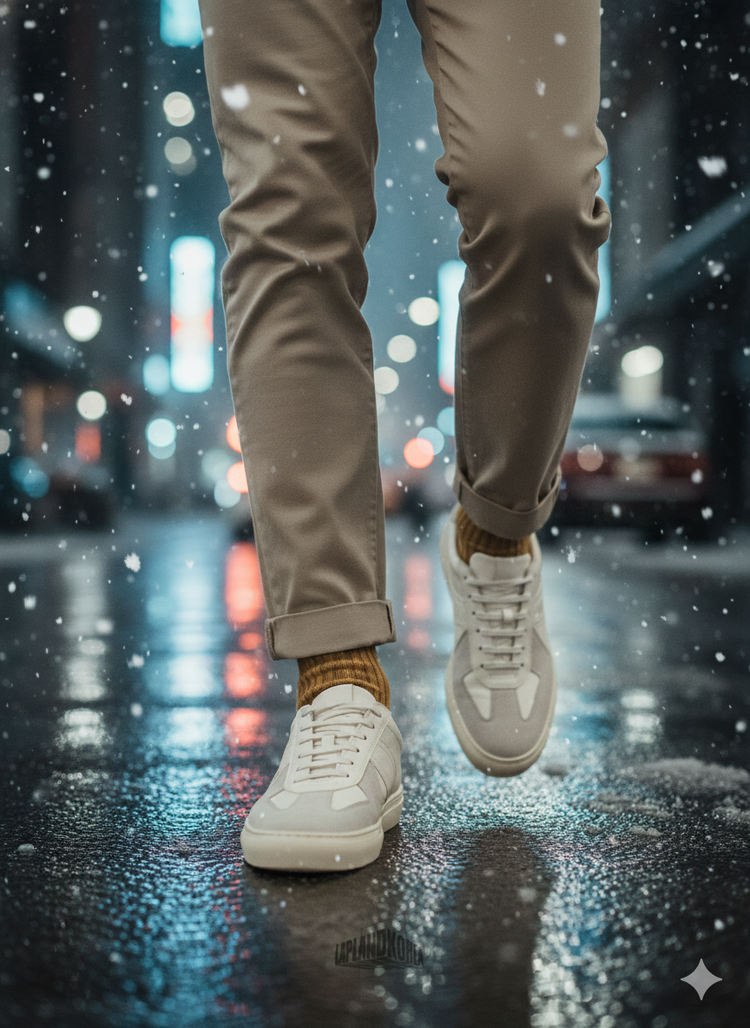 습도, 땀, 온도차등의 개인차로 인해 흰양말 또는 밝은색 양말에 이염이 발생될수 있습니다. 또는 젖은 발로 착화하거나 신발이 물에 젖게됐을 시